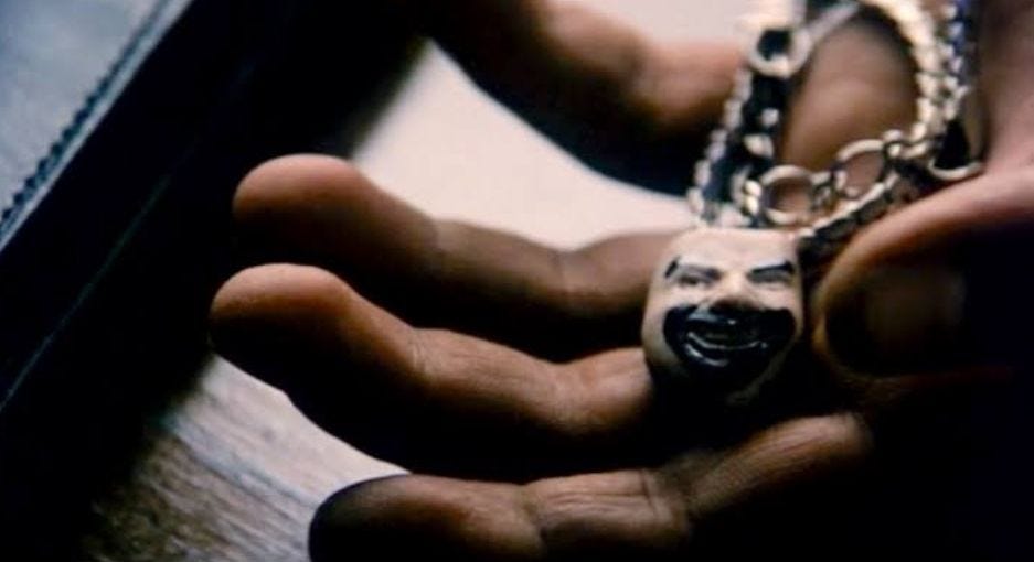 Raghavan's unpredictably unnerving and malicious persona is also depicted via him subtly switching between phases where he's subdued and dead-eyed, and gleefully unhinged the next. Furthermore, his penchant for twisting spiritual quotes from holy scriptures like the Bhagavad Gita or from epics such as the Ramayana for his own nefarious purpose and to even justify his crimes, i.e instances of him ominously repeating the quote 'Na koi marta hai, na koi maarta hai' (Nobody kills, nobody dies), also foreshadow his twisted and convulated ideology, as well as his overly delusional belief in immortality.